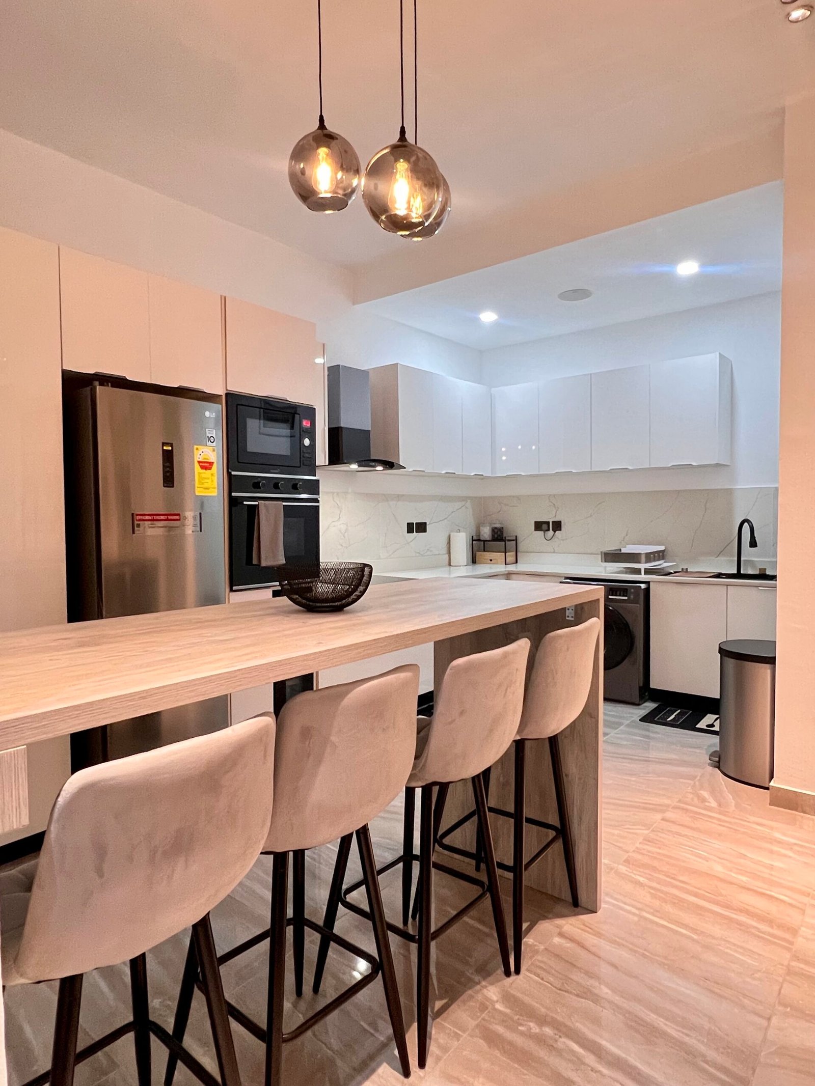 This spacious 1-bedroom apartment features an open-plan kitchen and living area, perfect for light cooking, casual dining, or simply unwinding in style. The modern design is complemented by high-end furnishings, a cozy atmosphere, and inbuilt Bluetooth speakers in both the living area and bedroom, bringing your favorite music or podcasts right into your space.