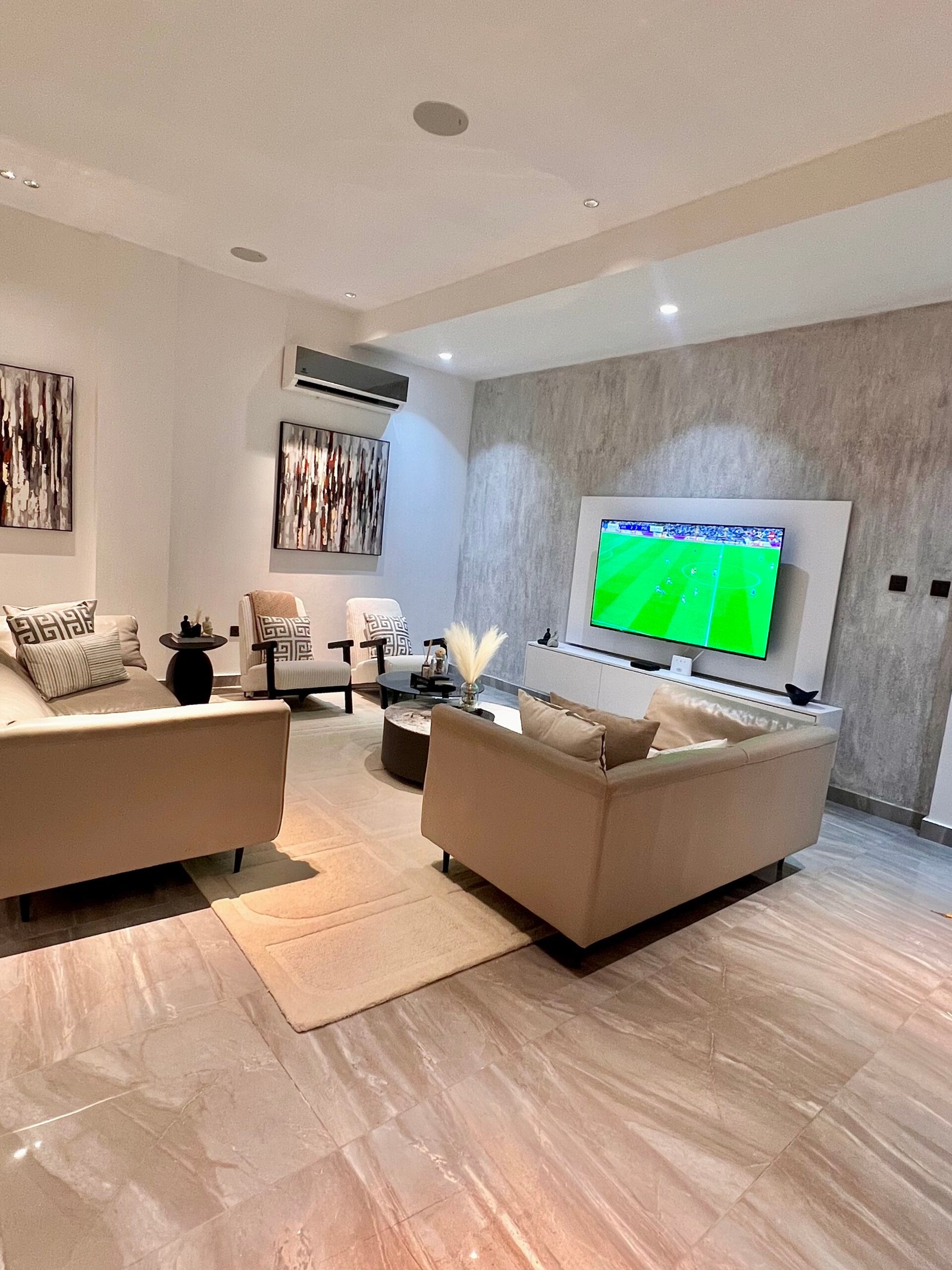 Enjoy a relaxing stay in this stylish 1-bedroom apartment with a warm, modern feel. It features an open-plan layout, smart TVs in both the living area and bedroom, and a private balcony perfect for unwinding. Conveniently located at Riviera Residence in East Legon, you’re just 10 minutes from the airport and Cantonments, and 20 minutes from Tema. Ideal for business or leisure, this apartment offers the perfect blend of comfort, convenience, and city living