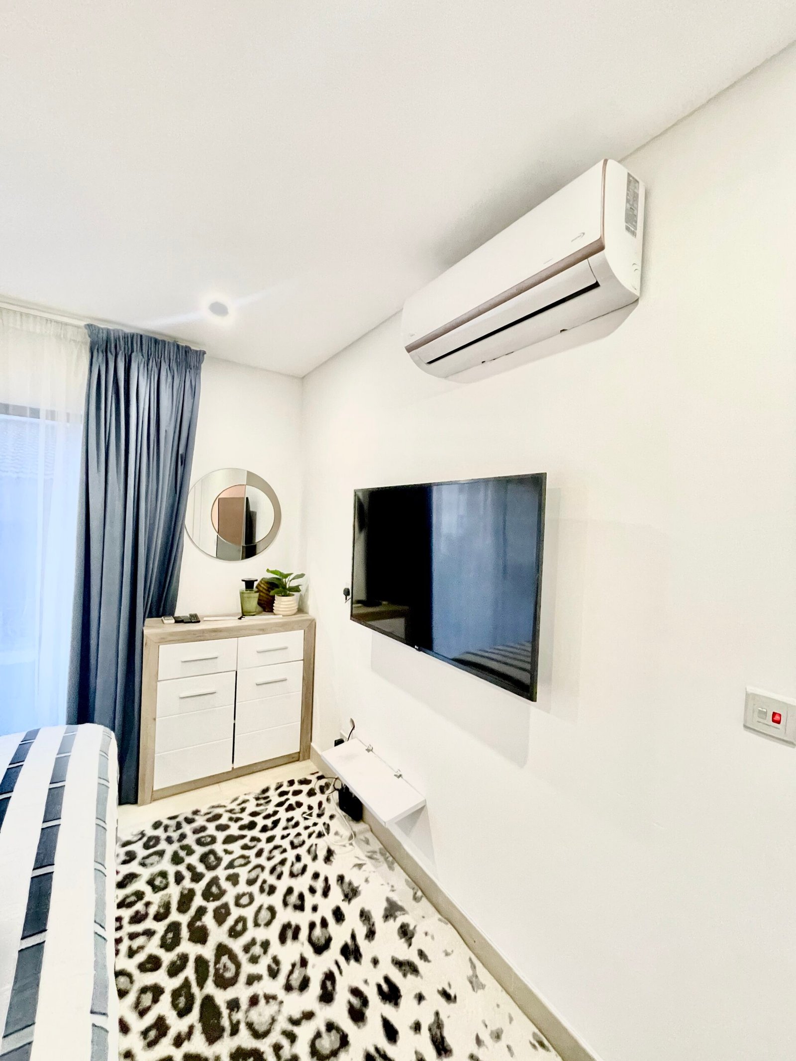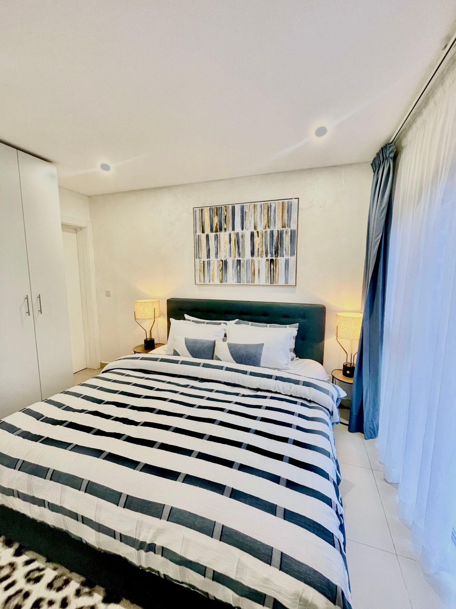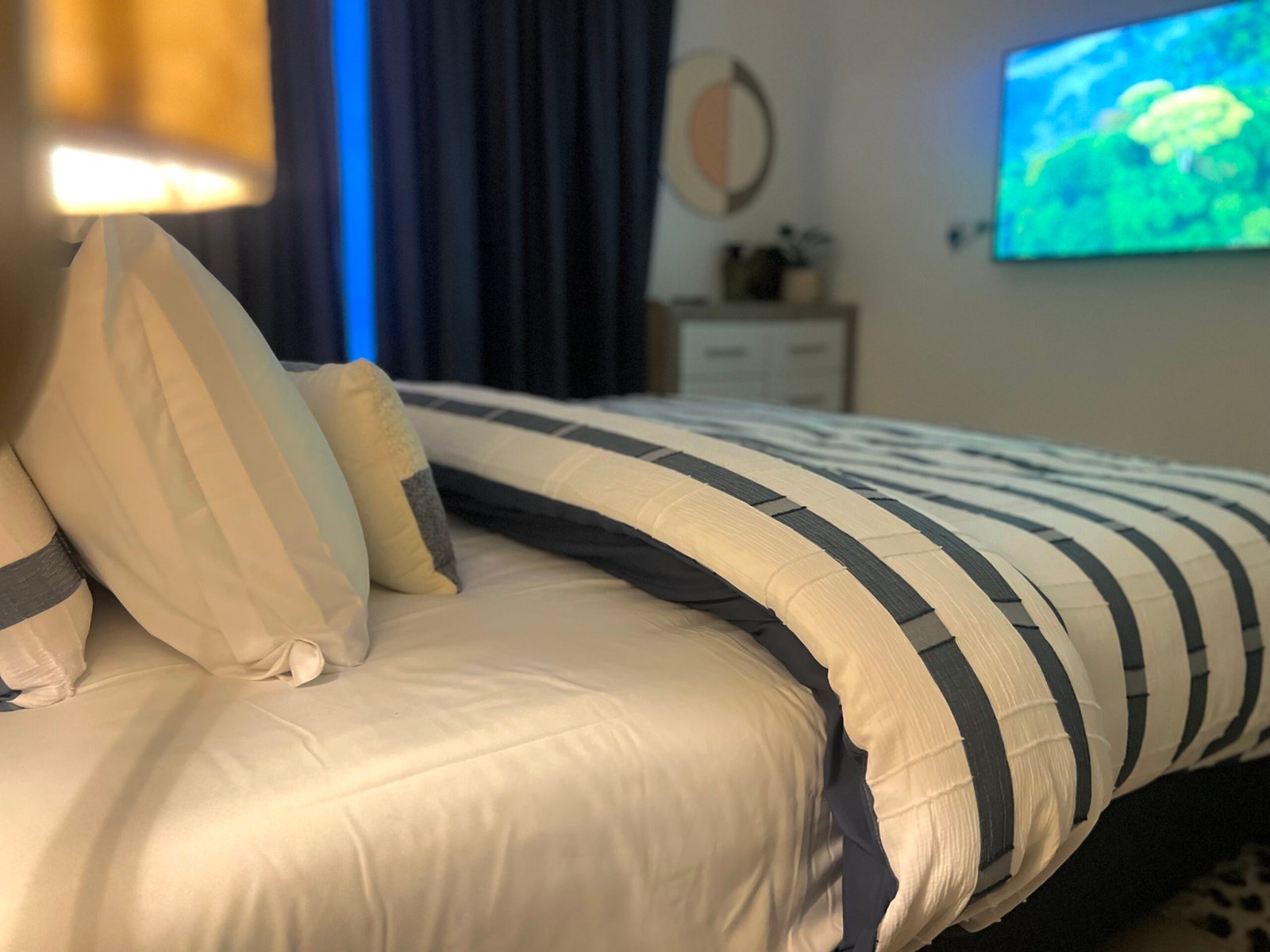 This modern 1-bedroom apartment offers the perfect blend of comfort and convenience. The open-plan kitchen comes fully equipped with sleek appliances, while the living area features a smart TV and comfortable seating for relaxation. The bedroom is a peaceful retreat with a plush bed, generous storage, and its own smart TV.