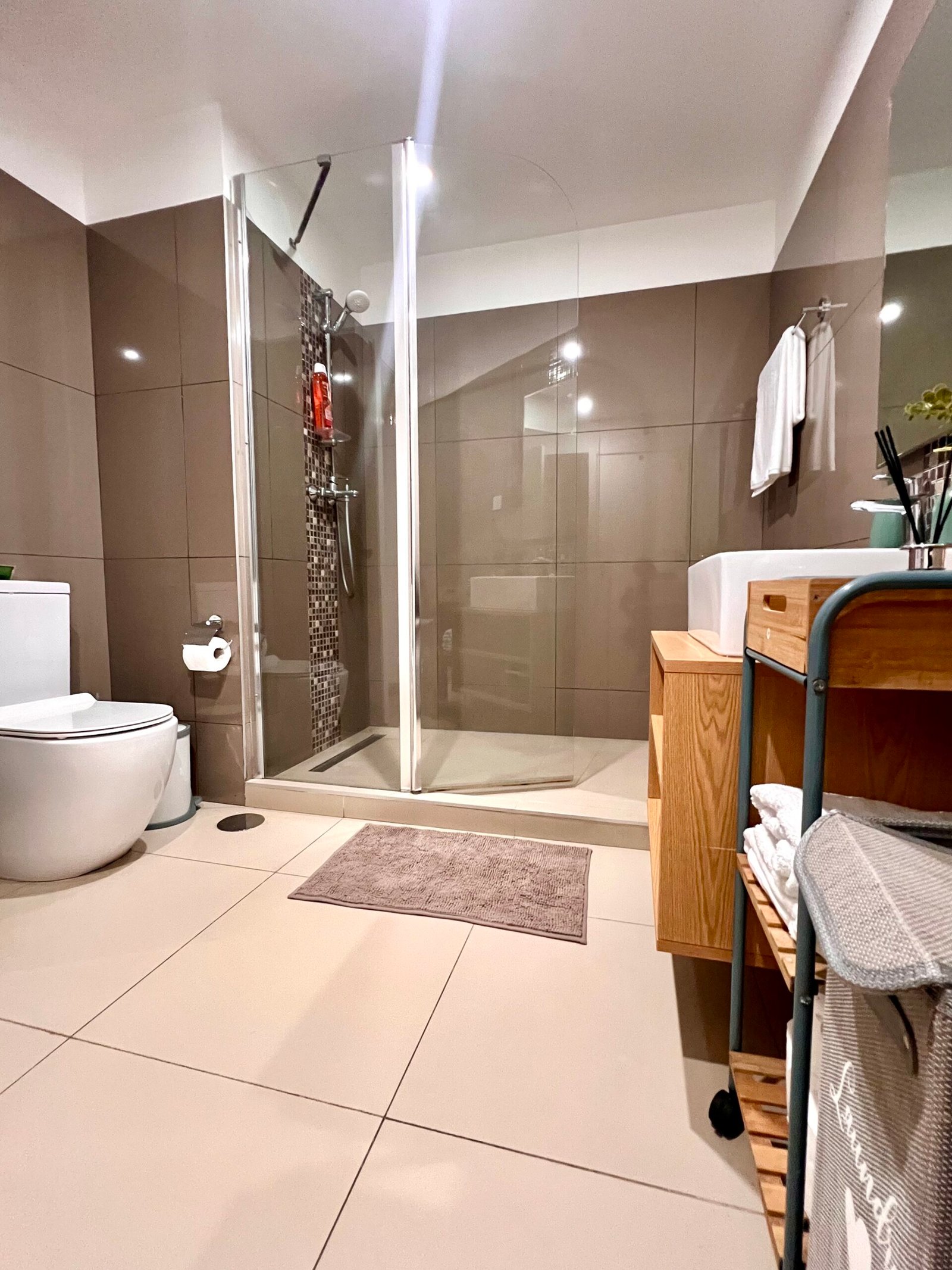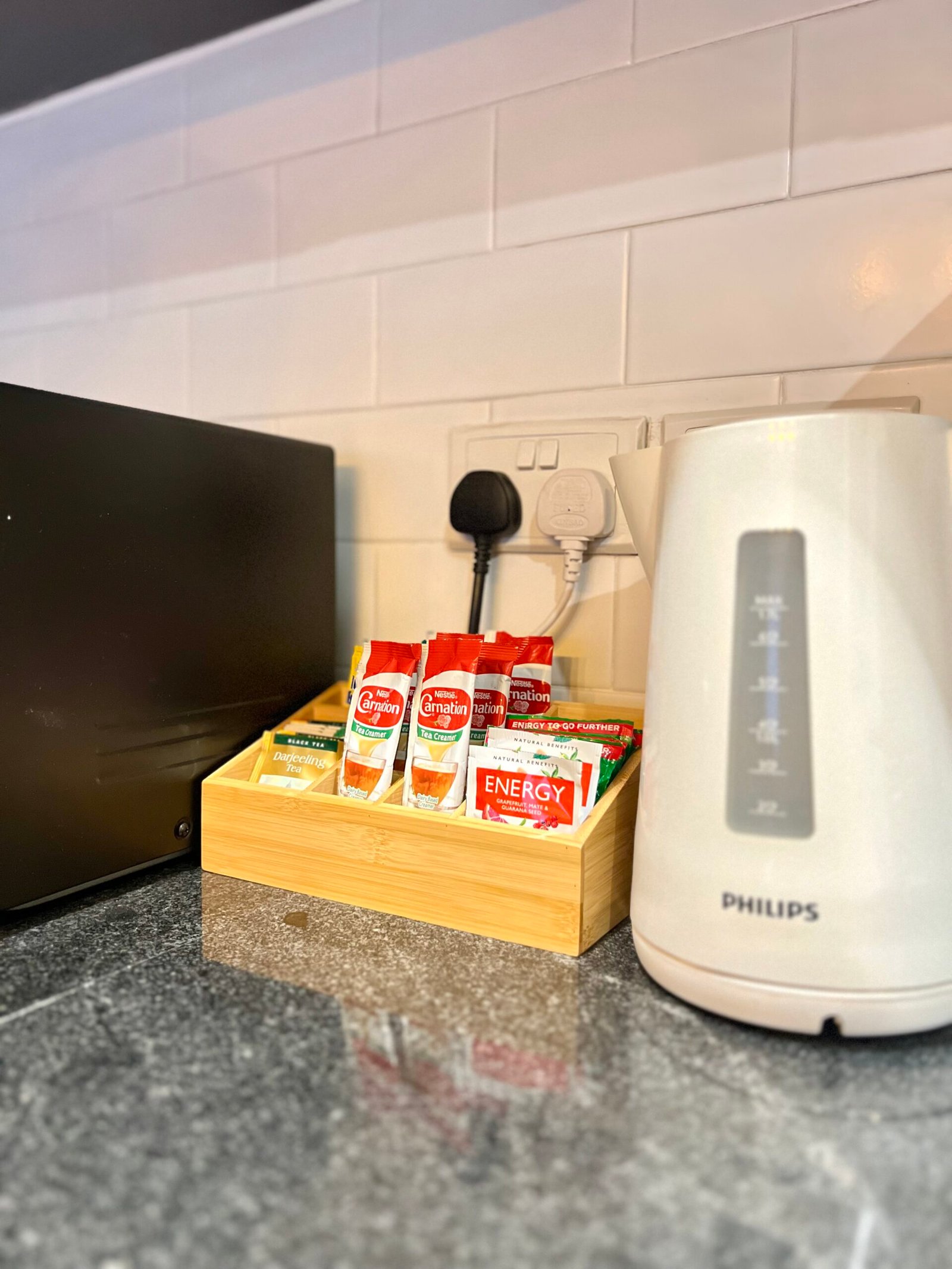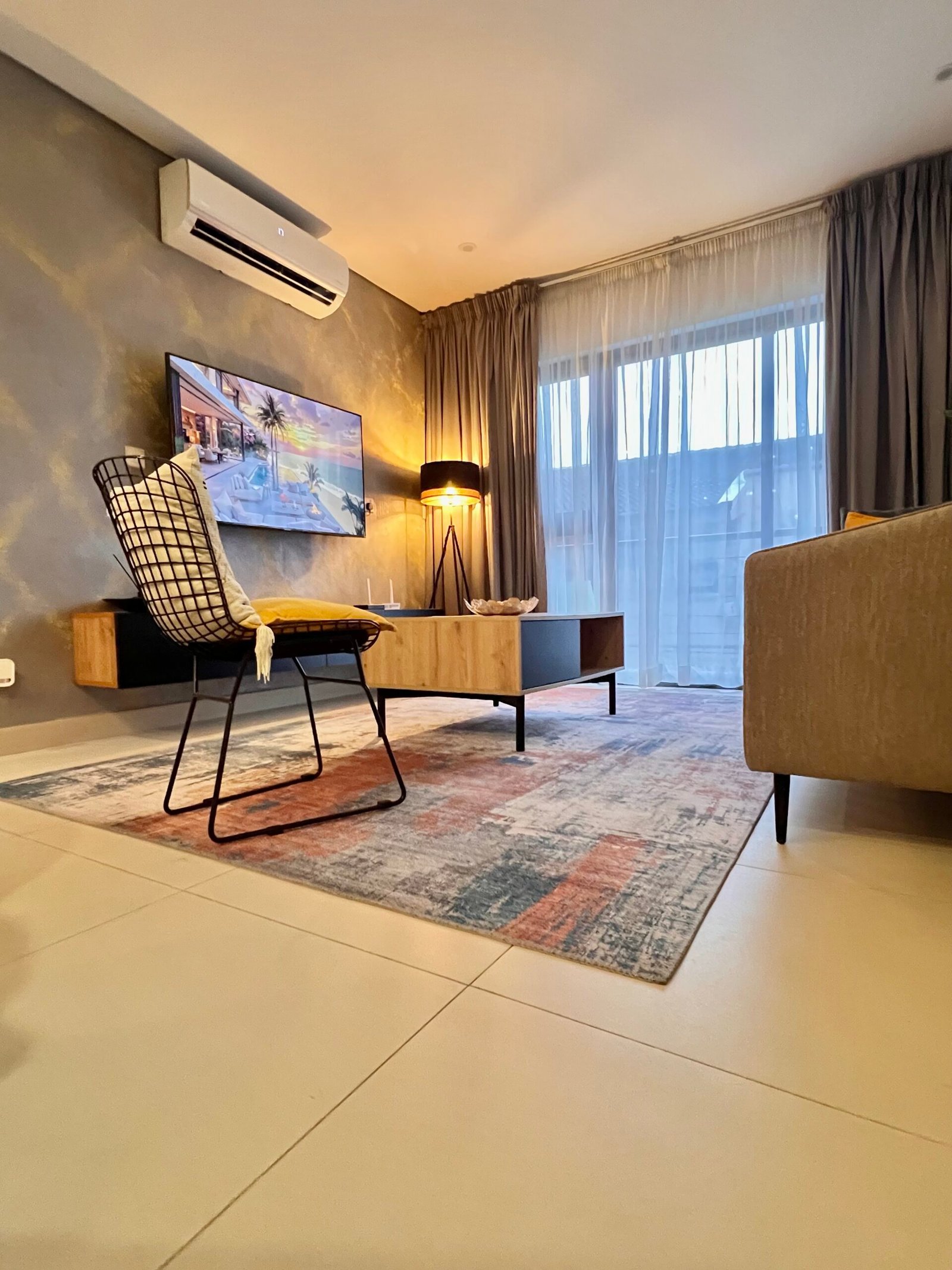 This modern 1-bedroom apartment offers the perfect blend of comfort and convenience. The open-plan kitchen comes fully equipped with sleek appliances, while the living area features a smart TV and comfortable seating for relaxation. The bedroom is a peaceful retreat with a plush bed, generous storage, and its own smart TV.