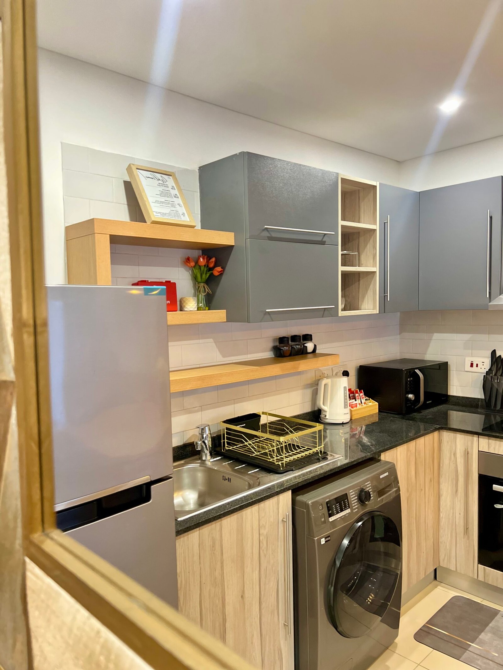 Experience the perfect blend of comfort and convenience in this stylish 1-bedroom apartment located in the upscale Cantonments neighborhood. Just a 10-minute drive from the airport, this apartment located in a peaceful enclave with easy access to Accra’s top dining spots, embassies, shopping centers, and more, this apartment offers a premium experience in a central location perfect for solo travelers, couples, and business professionals alike.