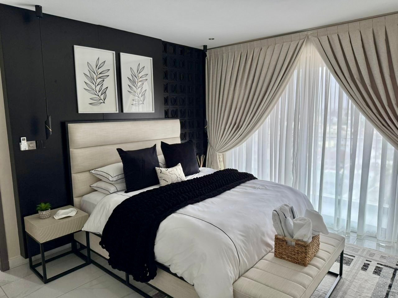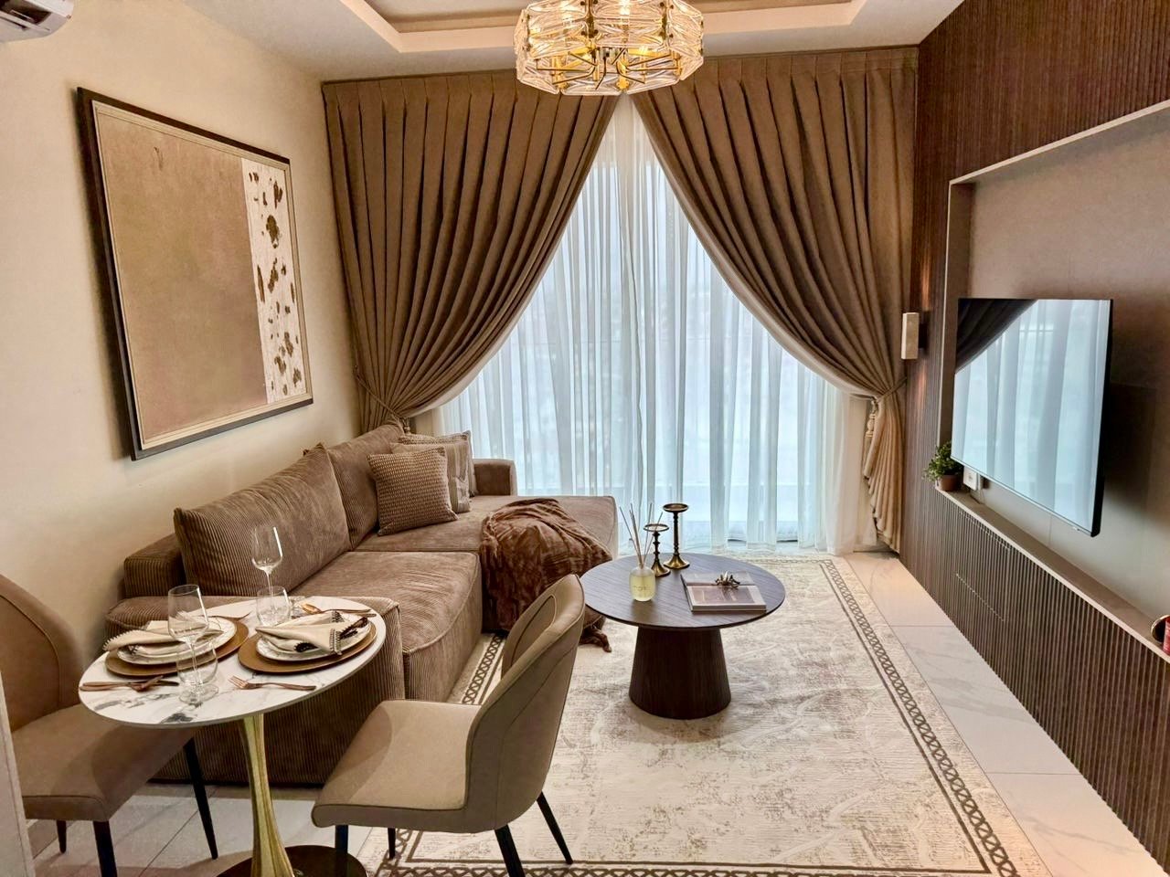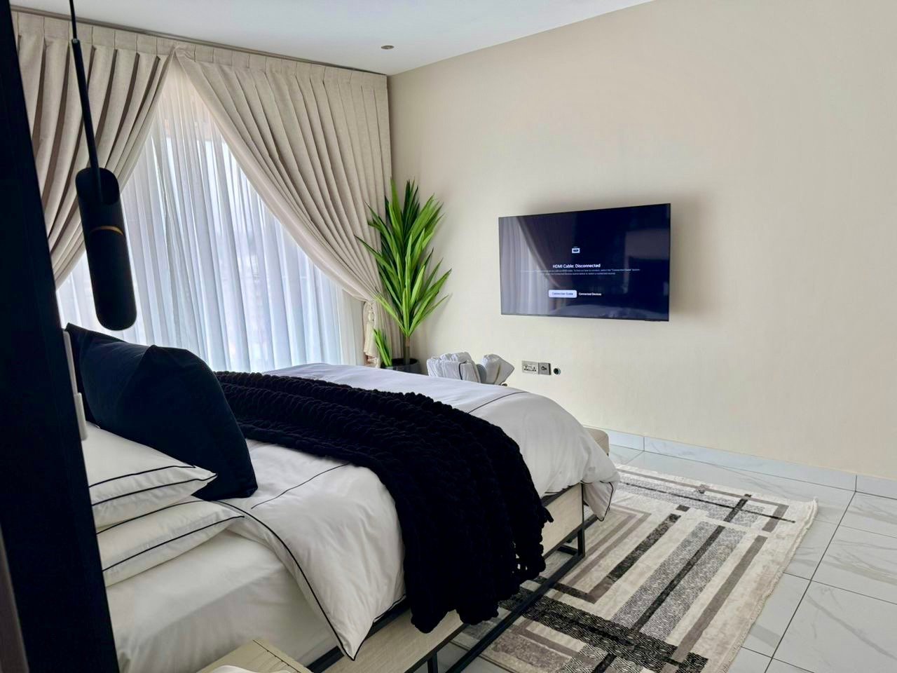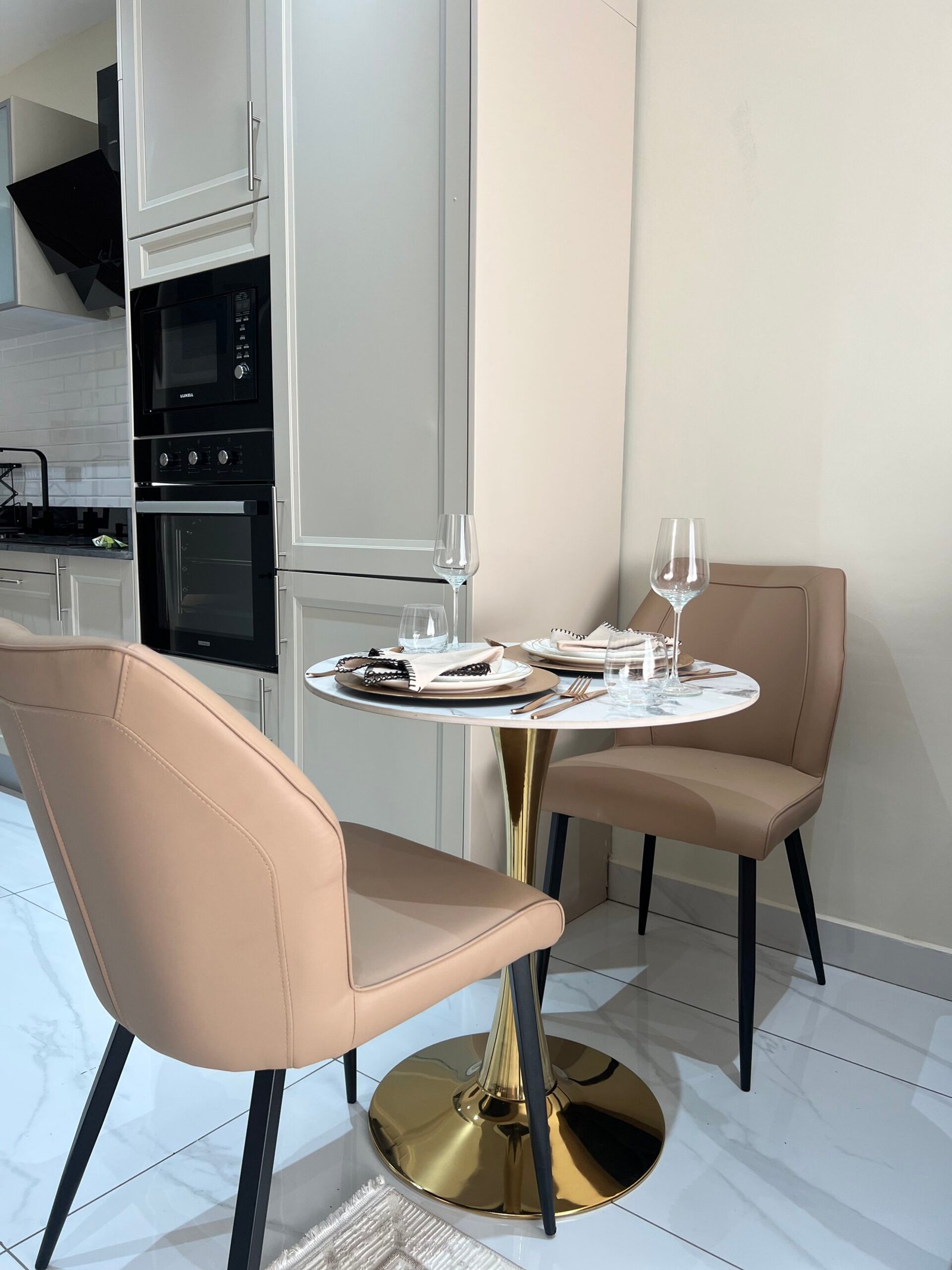 Enjoy a calm and stylish stay in this modern 1-bedroom, 1.5-bath apartment in East Legon. The living area has a soft, cozy sofa, warm lighting, and floor-to-ceiling curtains that give the space a luxury feel. Relax with a movie or enjoy a quiet dinner in the elegant dining corner.