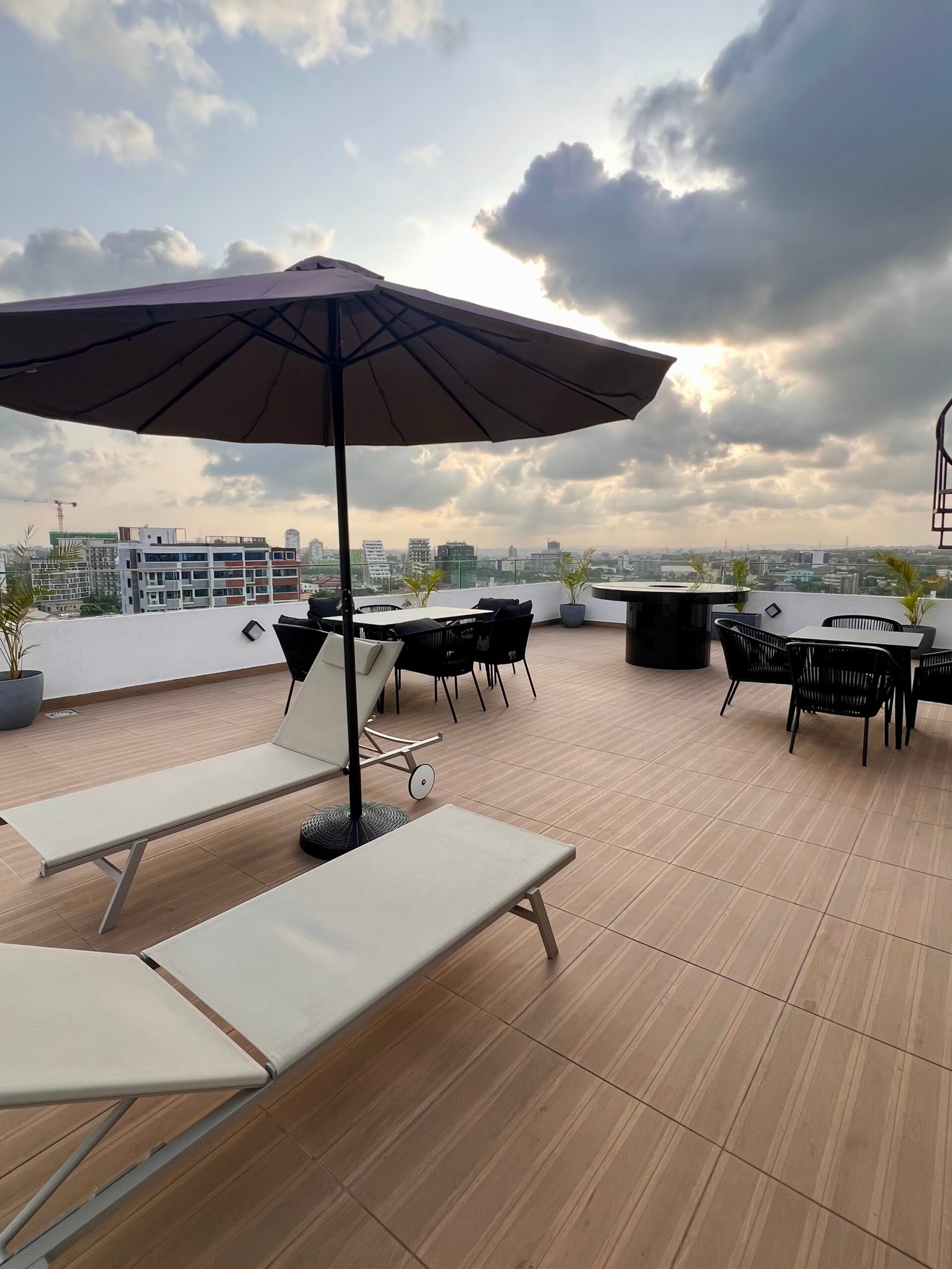 Guests have full access to the apartment and all its amenities, including the rooftop swimming pool, gym, and secure parking. The building features 24/7 security and a concierge service for a seamless stay. Reliable backup power ensures uninterrupted comfort.