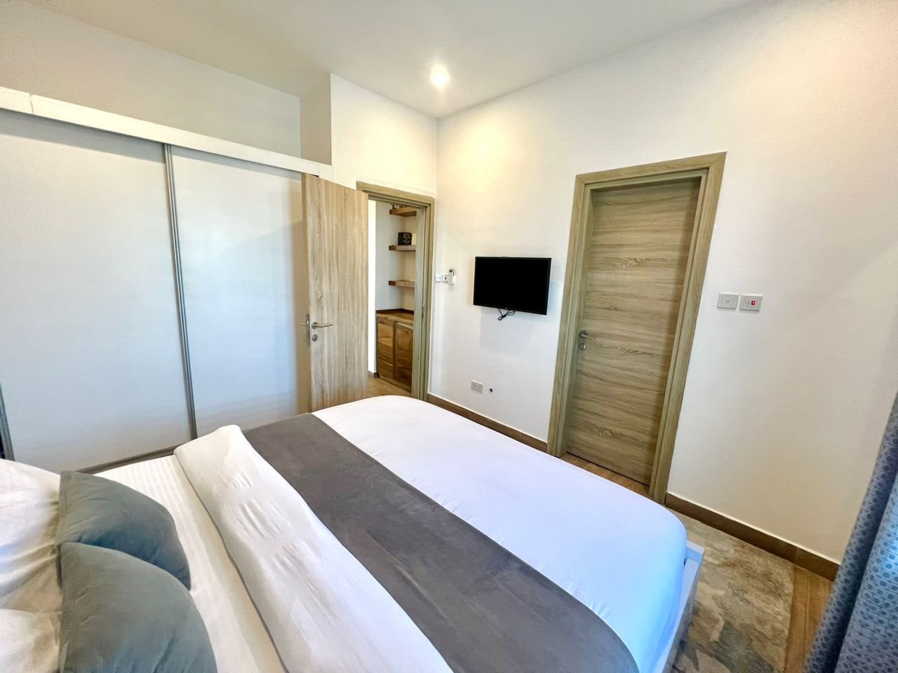 Enjoy a relaxing stay in this stylish 1-bedroom apartment with a warm, modern feel. It features an open-plan layout, smart TVs in both the living area and bedroom, and a private balcony perfect for unwinding. Conveniently located at Riviera Residence in East Legon, you’re just 10 minutes from the airport and Cantonments, and 20 minutes from Tema. Ideal for business or leisure, this apartment offers the perfect blend of comfort, convenience, and city living