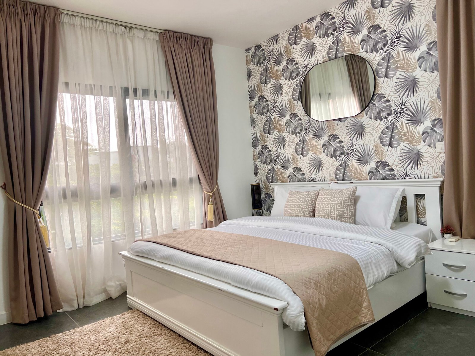 The open kitchen comes fully equipped with modern appliances and plenty of cabinet space for your essentials. The property, originally a 3-bed unit gives you access to the primary bedroom and 1.5 bathrooms as a 1 bed townhome with a spacious backyard, balcony space and car park space for 2 cars